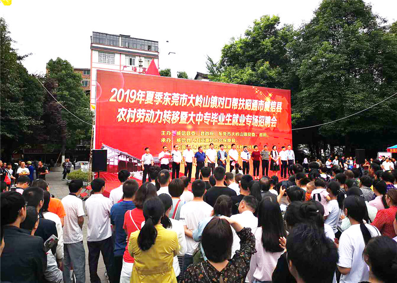 為進一步做好威信縣勞動力轉移就業(yè)工作,扎實推進東莞大嶺山鎮(zhèn)對口幫扶威信扶貧工作,加強兩地的勞務協(xié)作,助推威信脫貧攻堅。日前,威信縣委、政府及東莞市大嶺山鎮(zhèn)黨委、政府舉辦了“2019年夏季東莞市大嶺山鎮(zhèn)對口幫扶威信縣農村勞動力轉移就業(yè)專場招聘會”。