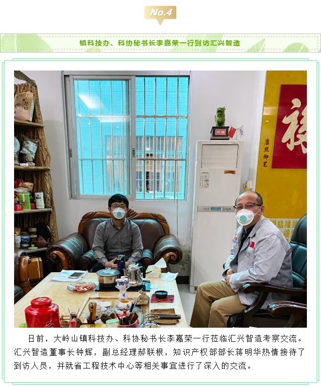 2020年3月11日,市科技局副局長(zhǎng)黃天梁、科長(zhǎng)李耀球、主任科員劉宇豪蒞臨匯興智造考察市重大科技項(xiàng)目攻關(guān)情況。匯興智造董事長(zhǎng)鐘輝、技術(shù)總監(jiān)丁度坤博士、財(cái)務(wù)總監(jiān)彭理仕,副總經(jīng)理彭大海及知識(shí)產(chǎn)權(quán)部部長(zhǎng)蔣明華等項(xiàng)目相關(guān)人員列席了會(huì)議。